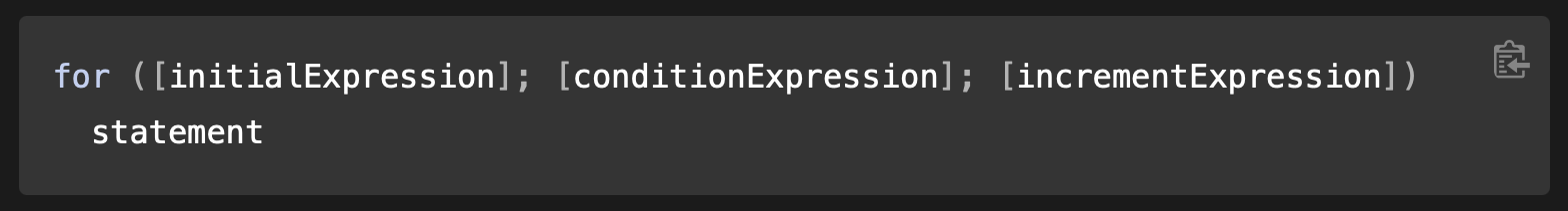 A for loop, repeats until a specified conditon evaluates to false.